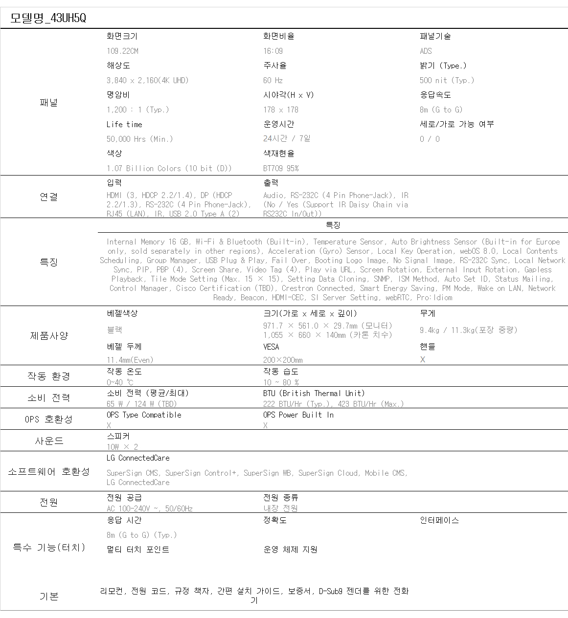 LG 단독형 사이니지 5시리즈 43인치 (43UH5Q)