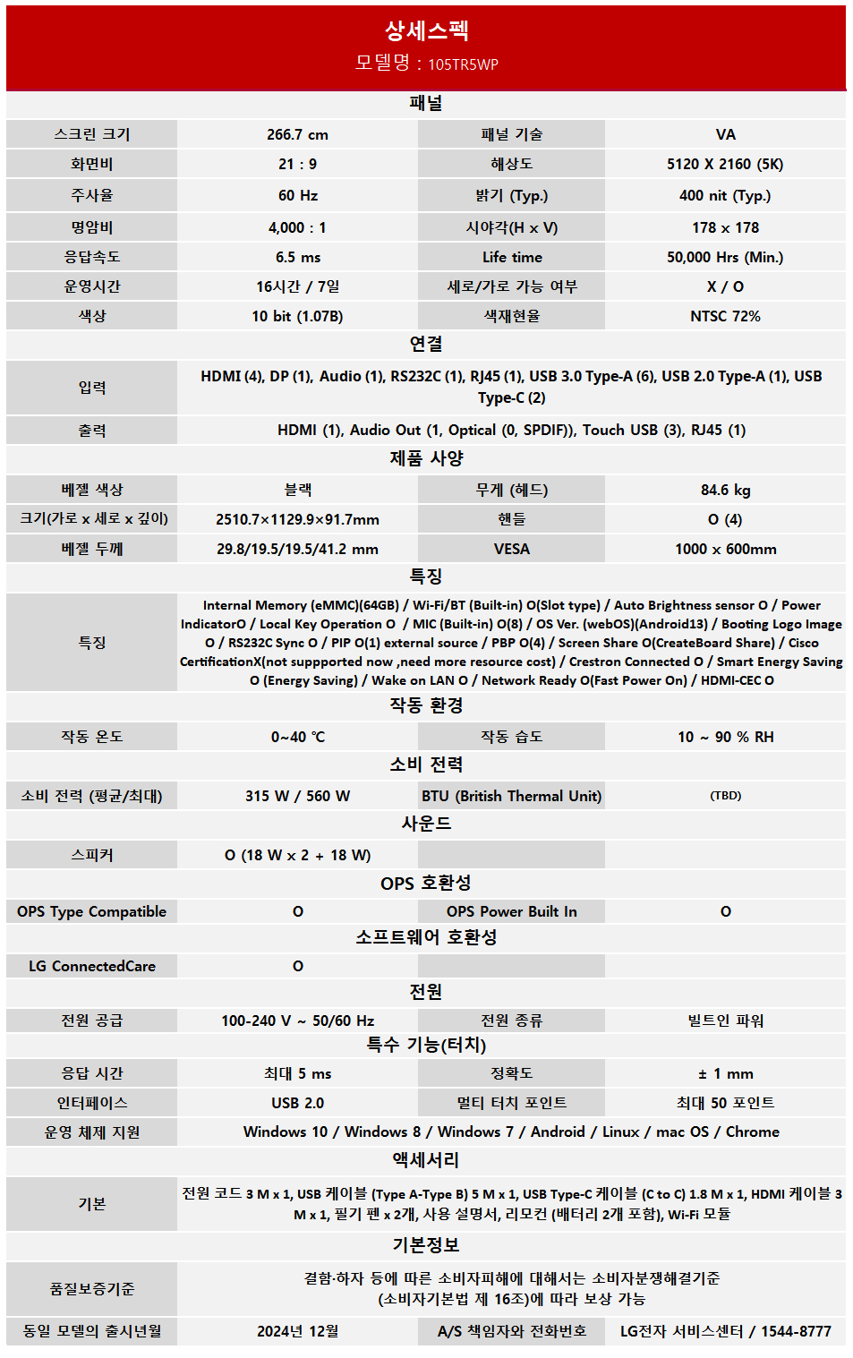 LG 105인치 전자칠판 (105TR5WP)