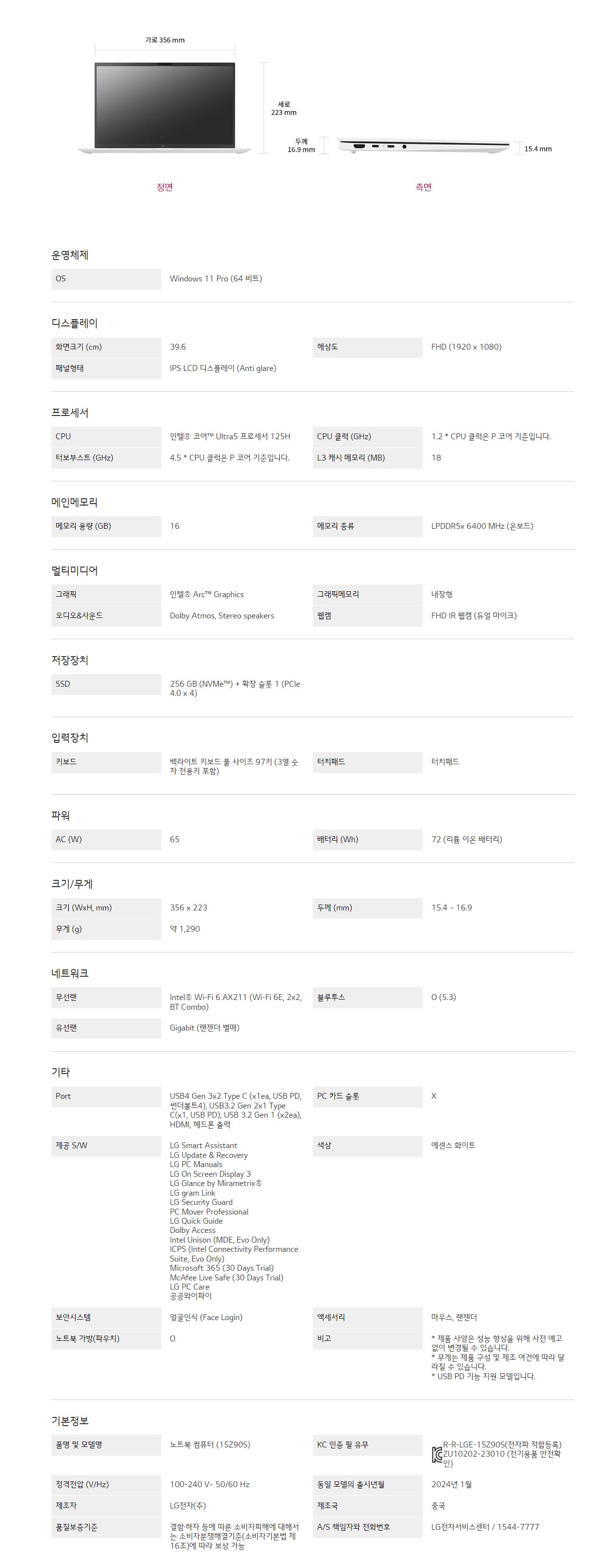 SSD : 256GB(NVMe™)+확장슬록1(PCle4.0*4)