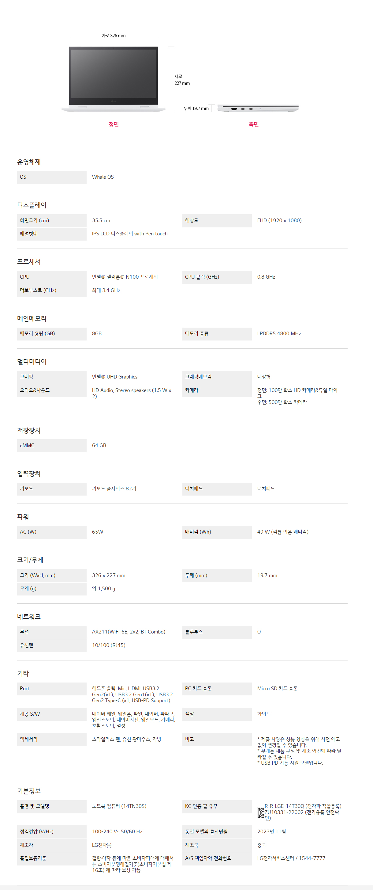 LG 웨일북 (14TN30S-EO18ML)