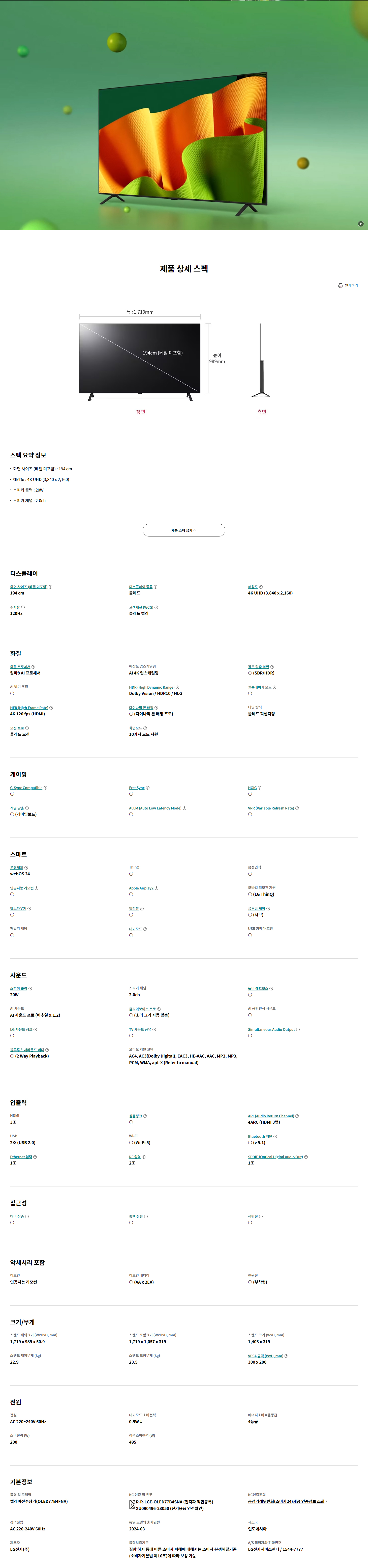 LG 올레드 TV B4 194cm (OLED77B4F)